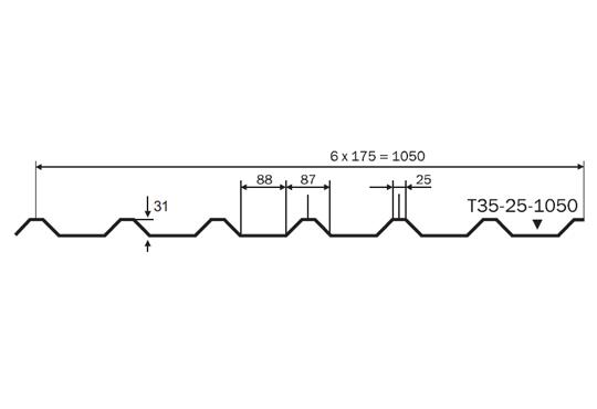 T35 має висоту профілю 31 мм і широку гаму кольорів. Виробляється в покритті Polyester (Поліестер) і Polyester Matt (Поліестер Мат). Лист має спеціальну канавку на краю замку, яка називається «капілярної». Вона запобігає потраплянню вологи під покрівельну поверхню.